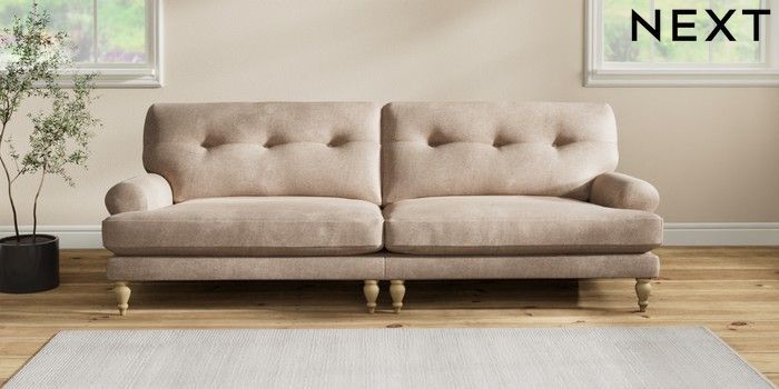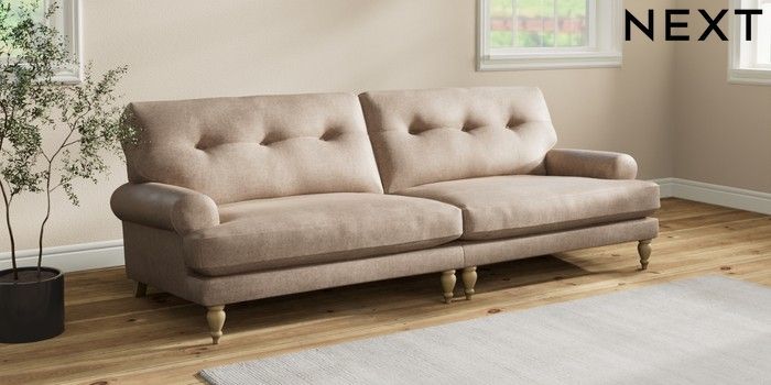 7.2.10 Erin Buttoned Back Deep Relaxed Sit 4 Seater Large Sofa Plush Chenille Mid Natural High Classic Turned - Light | Made Click here to use our website with more accessibility support, for example screen readers