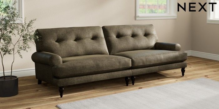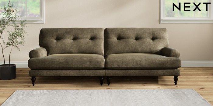 7.2.10 Erin Buttoned Back Deep Relaxed Sit 4 Seater Large Sofa Plush Chenille Moss Green High Classic Turned - Dark | Made Click here to use our website with more accessibility support, for example screen readers