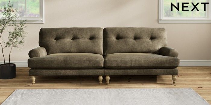 7.2.10 Erin Buttoned Back Deep Relaxed Sit 4 Seater Large Sofa Plush Chenille Moss Green High Classic Turned - Light | Made Click here to use our website with more accessibility support, for example screen readers