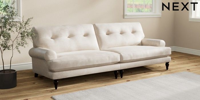 7.2.10 Erin Buttoned Back Deep Relaxed Sit 4 Seater Large Sofa Plush Chenille Oyster High Classic Turned - Dark | Made Click here to use our website with more accessibility support, for example screen readers