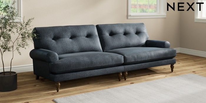 7.2.10 Erin Buttoned Back Deep Relaxed Sit 4 Seater Large Sofa Plush Chenille Slate Blue High Classic Turned - Mid | Made Click here to use our website with more accessibility support, for example screen readers