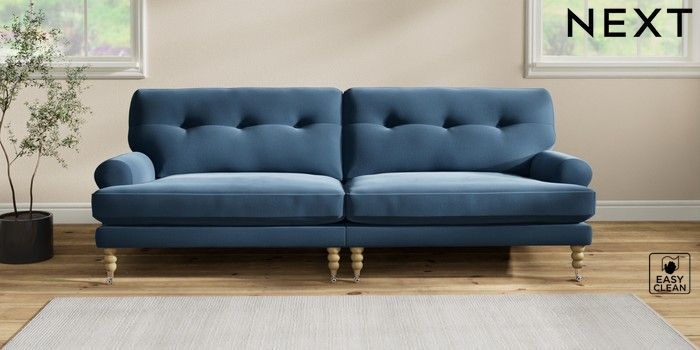 7.2.10 Erin Buttoned Back Deep Relaxed Sit 4 Seater Large Sofa Plush Velvet Easy Clean Airforce Blue High Classic Turned Chrome Castor - Light | Made Click here to use our website with more accessibility support, for example screen readers