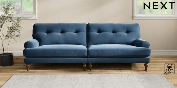 7.2.10 Erin Buttoned Back Deep Relaxed Sit 4 Seater Large Sofa Plush Velvet Easy Clean Airforce Blue High Classic Turned - Mid | Made Click here to use our website with more accessibility support, for example screen readers