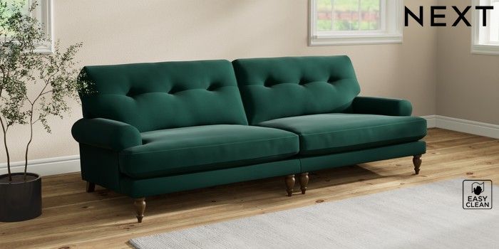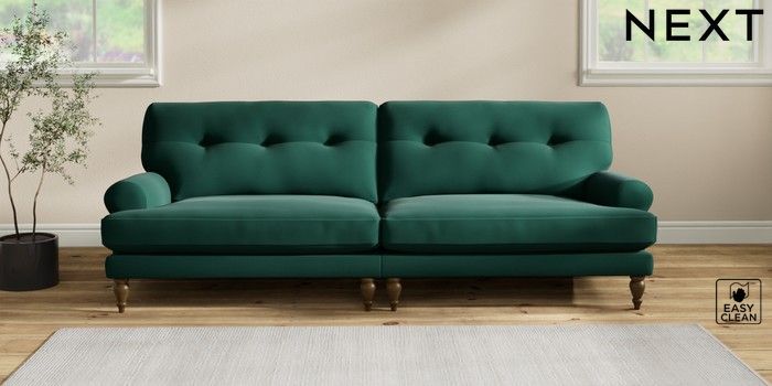 7.2.10 Erin Buttoned Back Deep Relaxed Sit 4 Seater Large Sofa Plush Velvet Easy Clean Bottle Green High Classic Turned - Mid | Made Click here to use our website with more accessibility support, for example screen readers