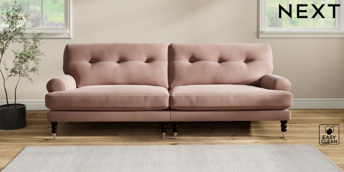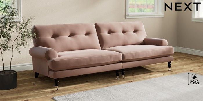 7.2.10 Erin Buttoned Back Deep Relaxed Sit 4 Seater Large Sofa Plush Velvet Easy Clean Mid Natural High Classic Turned Chrome Castor - Dark | Made Click here to use our website with more accessibility support, for example screen readers