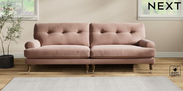 7.2.10 Erin Buttoned Back Deep Relaxed Sit 4 Seater Large Sofa Plush Velvet Easy Clean Mid Natural High Classic Turned Chrome Castor - Mid | Made Click here to use our website with more accessibility support, for example screen readers