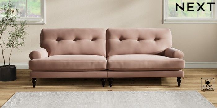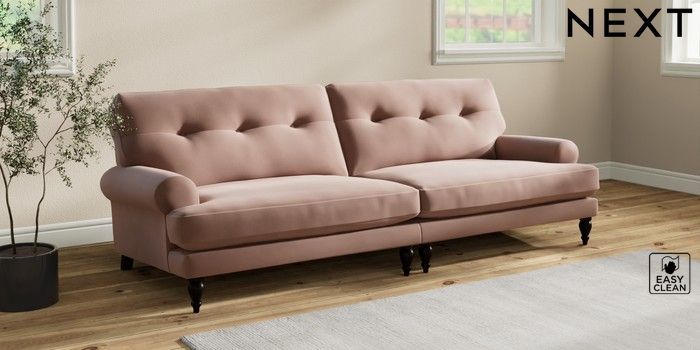 7.2.10 Erin Buttoned Back Deep Relaxed Sit 4 Seater Large Sofa Plush Velvet Easy Clean Mid Natural High Classic Turned - Dark | Made Click here to use our website with more accessibility support, for example screen readers