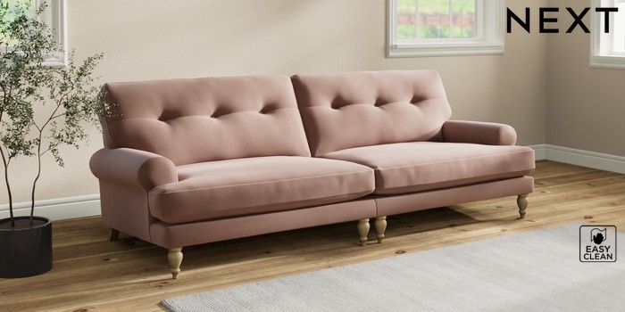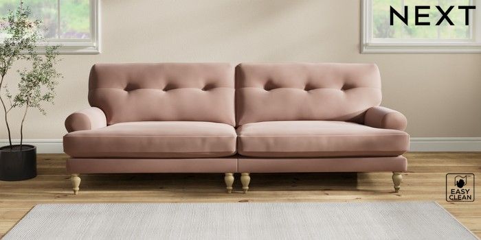 Add charm to your living space with the Erin Button Back Sofa. Its elegant scroll arms and classic button-back cushions create a timeless look. You'll love its "Relaxed Sit" cushions, specially designed for ultimate comfort. These cushions are made with clever foam and fibre, giving you a wonderfully soft, plump feel. To keep them looking their best, simply plump and turn them regularly. Plus, you can make the Erin your own by choosing from a huge range of coloured fabrics.
