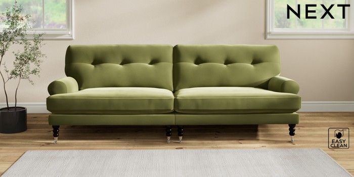Add charm to your living space with the Erin Button Back Sofa. Its elegant scroll arms and classic button-back cushions create a timeless look. You'll love its "Relaxed Sit" cushions, specially designed for ultimate comfort. These cushions are made with clever foam and fibre, giving you a wonderfully soft, plump feel. To keep them looking their best, simply plump and turn them regularly. Plus, you can make the Erin your own by choosing from a huge range of coloured fabrics.