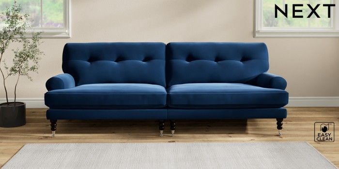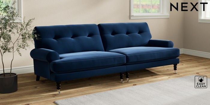 7.2.10 Erin Buttoned Back Deep Relaxed Sit 4 Seater Large Sofa Plush Velvet Easy Clean Navy Blue High Classic Turned Chrome Castor - Dark | Made Click here to use our website with more accessibility support, for example screen readers