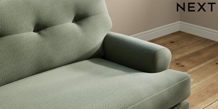 7.2.10 Erin Buttoned Back Deep Relaxed Sit 4 Seater Large Sofa Relaxed Linen Look Dark Green High Classic Turned Chrome Castor - Mid | Made Click here to use our website with more accessibility support, for example screen readers
