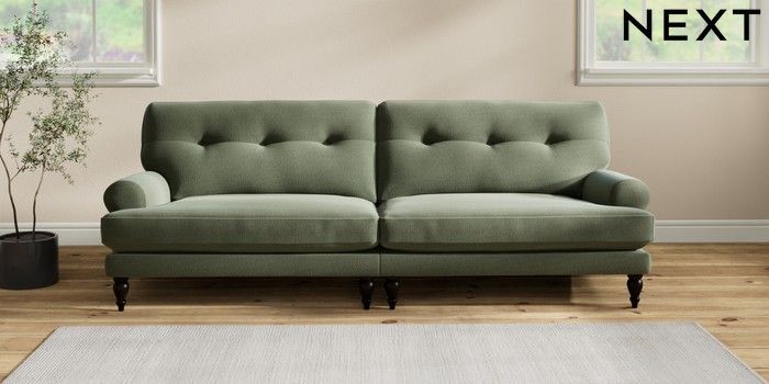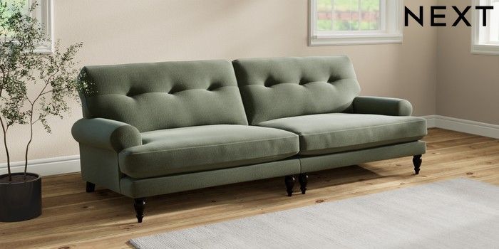 7.2.10 Erin Buttoned Back Deep Relaxed Sit 4 Seater Large Sofa Relaxed Linen Look Dark Green High Classic Turned - Dark | Made Click here to use our website with more accessibility support, for example screen readers