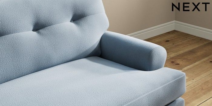 7.2.10 Erin Buttoned Back Deep Relaxed Sit 4 Seater Large Sofa Relaxed Linen Look Mid Blue High Classic Turned Chrome Castor - Mid | Made Click here to use our website with more accessibility support, for example screen readers