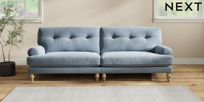 7.2.10 Erin Buttoned Back Deep Relaxed Sit 4 Seater Large Sofa Relaxed Linen Look Mid Blue High Classic Turned - Light | Made Click here to use our website with more accessibility support, for example screen readers
