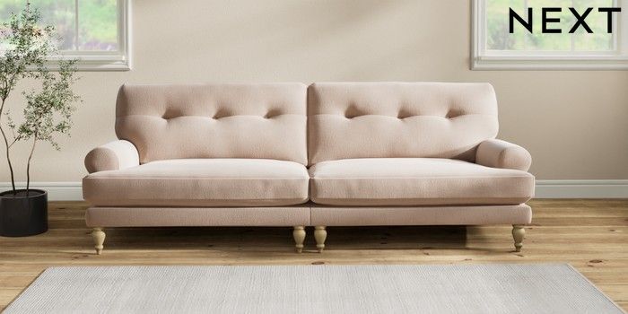 7.2.10 Erin Buttoned Back Deep Relaxed Sit 4 Seater Large Sofa Relaxed Linen Look Mid Natural High Classic Turned - Light | Made Click here to use our website with more accessibility support, for example screen readers