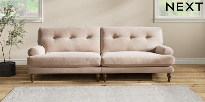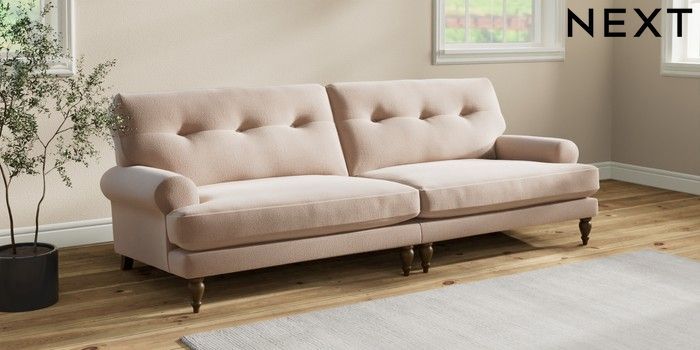 7.2.10 Erin Buttoned Back Deep Relaxed Sit 4 Seater Large Sofa Relaxed Linen Look Mid Natural High Classic Turned - Mid | Made Click here to use our website with more accessibility support, for example screen readers