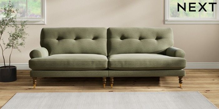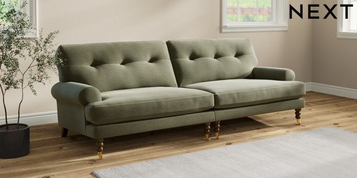 7.2.10 Erin Buttoned Back Deep Relaxed Sit 4 Seater Large Sofa Ripple Chenille Mid Moss Green High Classic Turned Brass Castor - Mid | Made Click here to use our website with more accessibility support, for example screen readers