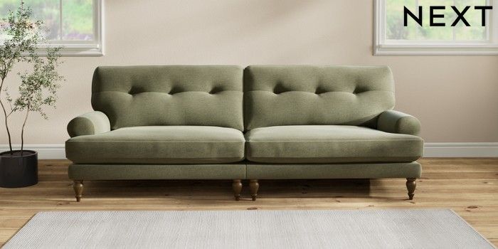 7.2.10 Erin Buttoned Back Deep Relaxed Sit 4 Seater Large Sofa Ripple Chenille Mid Moss Green High Classic Turned - Mid | Made Click here to use our website with more accessibility support, for example screen readers