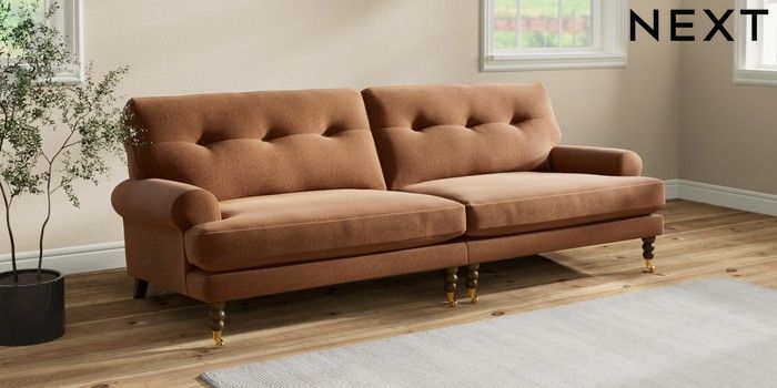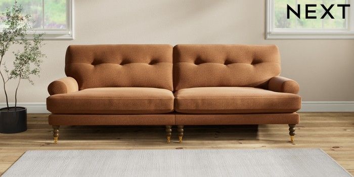 7.2.10 Erin Buttoned Back Deep Relaxed Sit 4 Seater Large Sofa Ripple Chenille Mid Rust Brown High Classic Turned Brass Castor - Mid | Made Click here to use our website with more accessibility support, for example screen readers