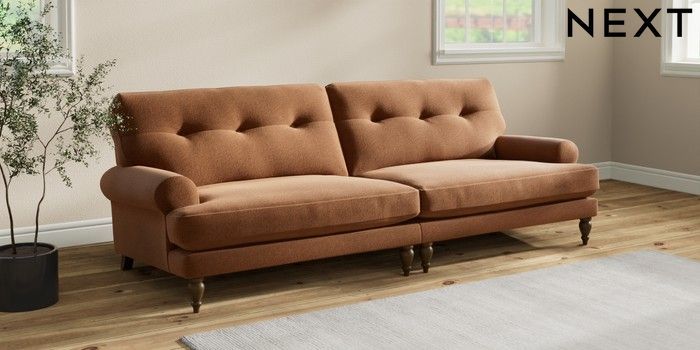 7.2.10 Erin Buttoned Back Deep Relaxed Sit 4 Seater Large Sofa Ripple Chenille Mid Rust Brown High Classic Turned - Mid | Made Click here to use our website with more accessibility support, for example screen readers