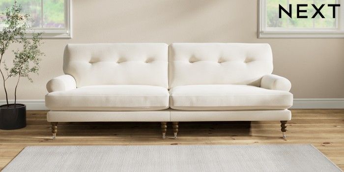 7.2.10 Erin Buttoned Back Deep Relaxed Sit 4 Seater Large Sofa Ripple Chenille Oyster High Classic Turned Chrome Castor - Mid | Made Click here to use our website with more accessibility support, for example screen readers