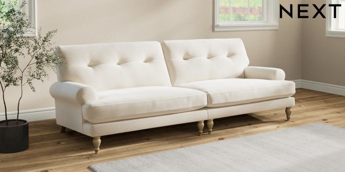 7.2.10 Erin Buttoned Back Deep Relaxed Sit 4 Seater Large Sofa Ripple Chenille Oyster High Classic Turned - Light | Made Click here to use our website with more accessibility support, for example screen readers