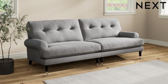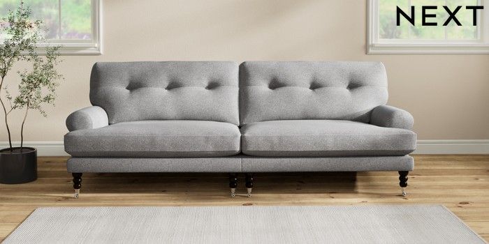7.2.10 Erin Buttoned Back Deep Relaxed Sit 4 Seater Large Sofa Studio Chenille Mid Grey High Classic Turned Chrome Castor - Dark | Made Click here to use our website with more accessibility support, for example screen readers