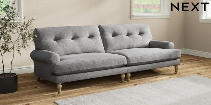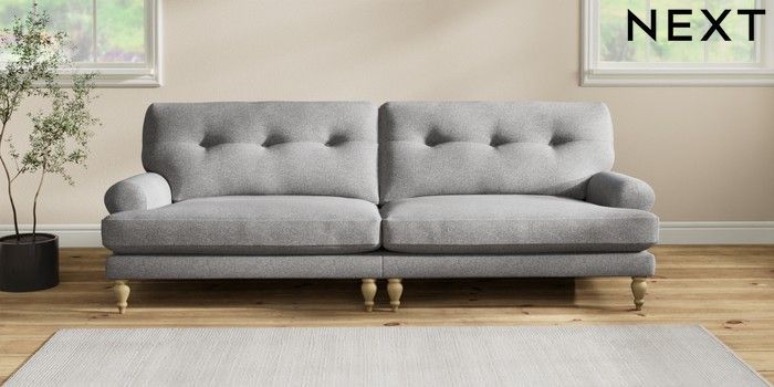 7.2.10 Erin Buttoned Back Deep Relaxed Sit 4 Seater Large Sofa Studio Chenille Mid Grey High Classic Turned - Light | Made Click here to use our website with more accessibility support, for example screen readers