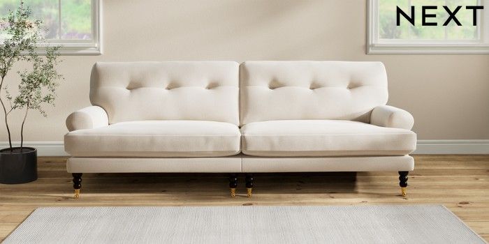 7.2.10 Erin Buttoned Back Deep Relaxed Sit 4 Seater Large Sofa Studio Chenille Oyster High Classic Turned Brass Castor - Dark | Made Click here to use our website with more accessibility support, for example screen readers