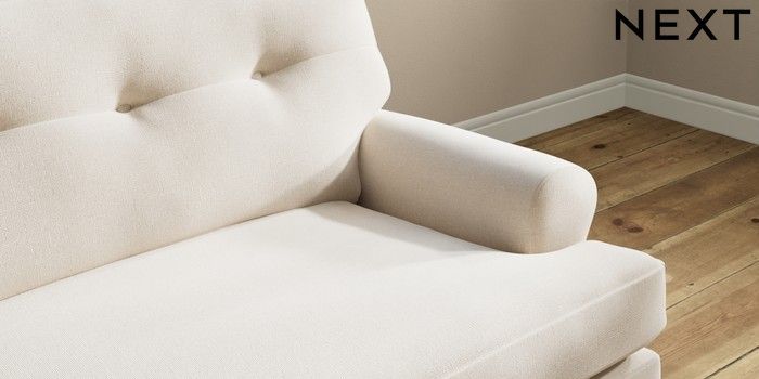 7.2.10 Erin Buttoned Back Deep Relaxed Sit 4 Seater Large Sofa Studio Chenille Oyster High Classic Turned Brass Castor - Mid | Made Click here to use our website with more accessibility support, for example screen readers