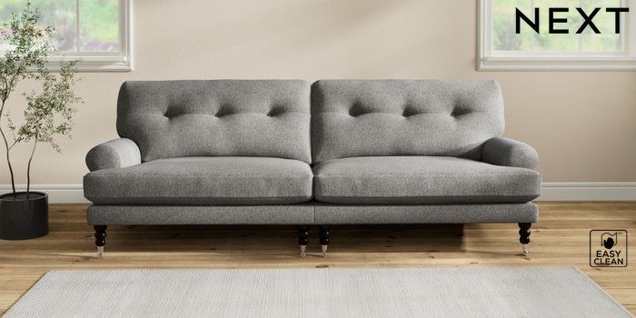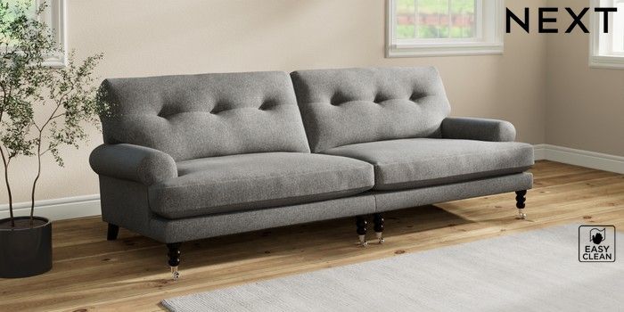 7.2.10 Erin Buttoned Back Deep Relaxed Sit 4 Seater Large Sofa Tweedy Blend Easy Clean Dark Grey High Classic Turned Chrome Castor - Dark | Made Click here to use our website with more accessibility support, for example screen readers