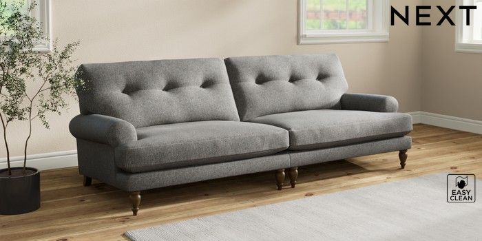 7.2.10 Erin Buttoned Back Deep Relaxed Sit 4 Seater Large Sofa Tweedy Blend Easy Clean Dark Grey High Classic Turned - Mid | Made Click here to use our website with more accessibility support, for example screen readers