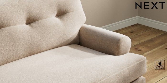 7.2.10 Erin Buttoned Back Deep Relaxed Sit 4 Seater Large Sofa Tweedy Blend Easy Clean Light Dove Natural High Classic Turned Chrome Castor - Dark | Made Click here to use our website with more accessibility support, for example screen readers