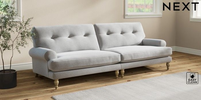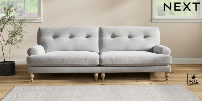 7.2.10 Erin Buttoned Back Deep Relaxed Sit 4 Seater Large Sofa Tweedy Blend Easy Clean Light Silver Grey High Classic Turned - Light | Made Click here to use our website with more accessibility support, for example screen readers