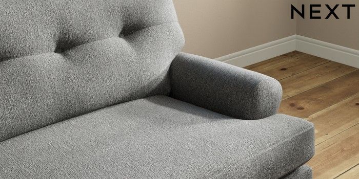 7.2.10 Erin Buttoned Back Deep Relaxed Sit 4 Seater Large Sofa Tweedy Chenille Dark Grey High Classic Turned Brass Castor - Dark | Made Click here to use our website with more accessibility support, for example screen readers