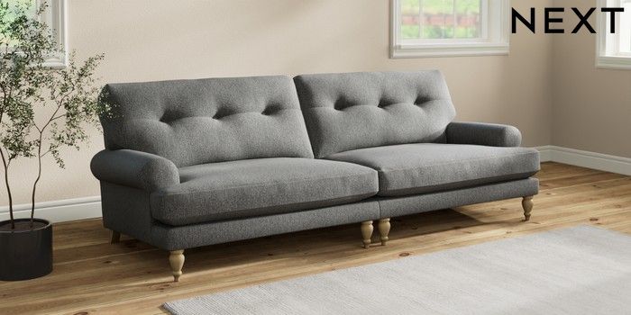 7.2.10 Erin Buttoned Back Deep Relaxed Sit 4 Seater Large Sofa Tweedy Chenille Dark Grey High Classic Turned - Light | Made Click here to use our website with more accessibility support, for example screen readers
