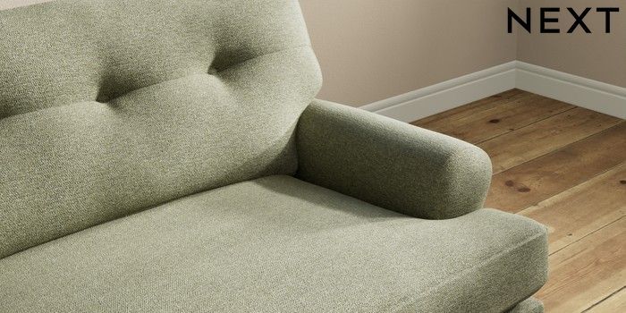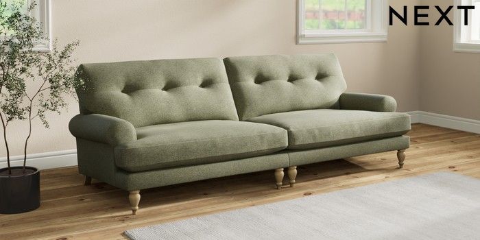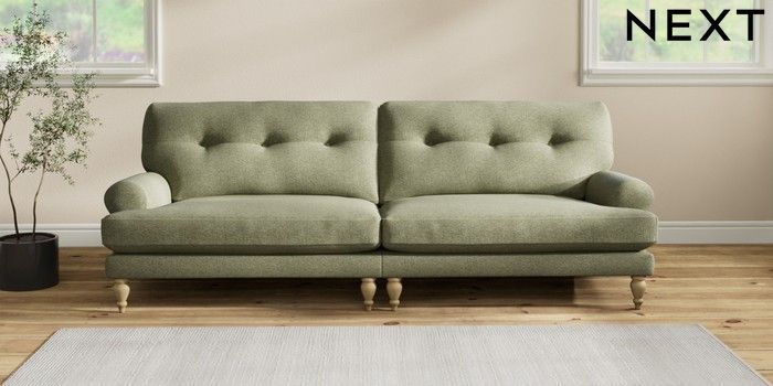 7.2.10 Erin Buttoned Back Deep Relaxed Sit 4 Seater Large Sofa Tweedy Chenille Mid Moss Green High Classic Turned - Light | Made Click here to use our website with more accessibility support, for example screen readers