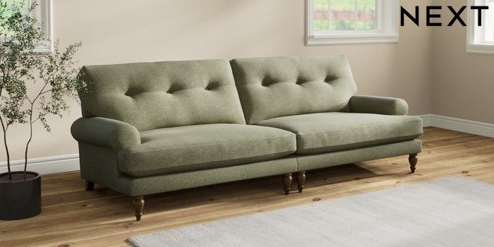 7.2.10 Erin Buttoned Back Deep Relaxed Sit 4 Seater Large Sofa Tweedy Chenille Mid Moss Green High Classic Turned - Mid | Made Click here to use our website with more accessibility support, for example screen readers