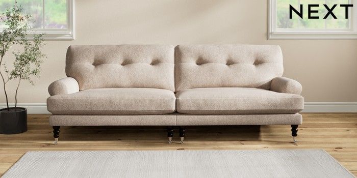 7.2.10 Erin Buttoned Back Deep Relaxed Sit 4 Seater Large Sofa Tweedy Chenille Mid Natural High Classic Turned Chrome Castor - Dark | Made Click here to use our website with more accessibility support, for example screen readers