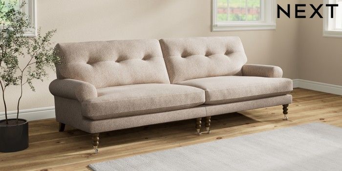 Add charm to your living space with the Erin Button Back Sofa. Its elegant scroll arms and classic button-back cushions create a timeless look. You'll love its "Relaxed Sit" cushions, specially designed for ultimate comfort. These cushions are made with clever foam and fibre, giving you a wonderfully soft, plump feel. To keep them looking their best, simply plump and turn them regularly. Plus, you can make the Erin your own by choosing from a huge range of coloured fabrics.