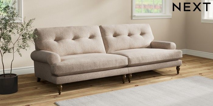 7.2.10 Erin Buttoned Back Deep Relaxed Sit 4 Seater Large Sofa Tweedy Chenille Mid Natural High Classic Turned - Mid | Made Click here to use our website with more accessibility support, for example screen readers