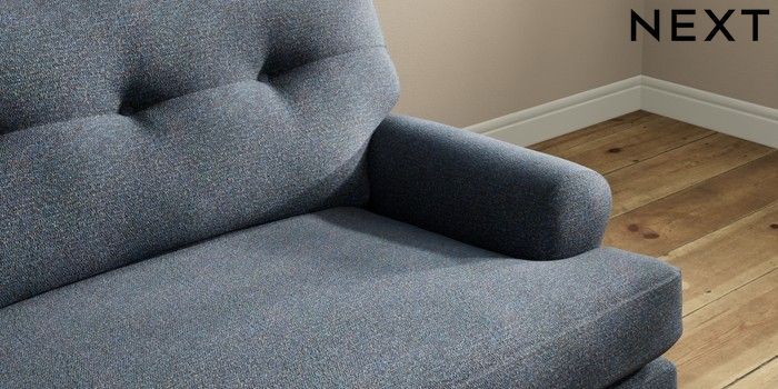 7.2.10 Erin Buttoned Back Deep Relaxed Sit 4 Seater Large Sofa Tweedy Chenille Navy Blue High Classic Turned Brass Castor - Mid | Made Click here to use our website with more accessibility support, for example screen readers