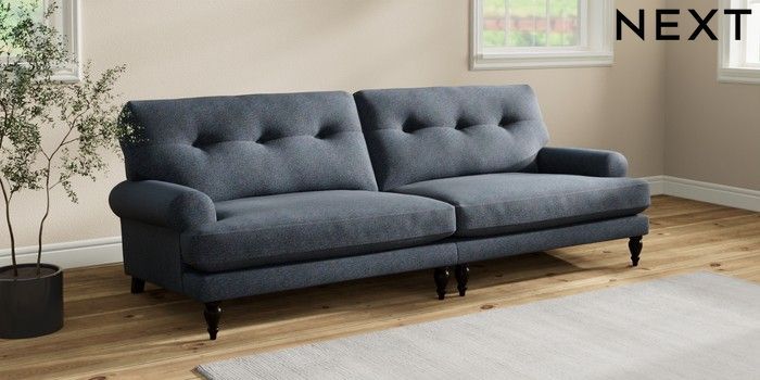 Add charm to your living space with the Erin Button Back Sofa. Its elegant scroll arms and classic button-back cushions create a timeless look. You'll love its "Relaxed Sit" cushions, specially designed for ultimate comfort. These cushions are made with clever foam and fibre, giving you a wonderfully soft, plump feel. To keep them looking their best, simply plump and turn them regularly. Plus, you can make the Erin your own by choosing from a huge range of coloured fabrics.
