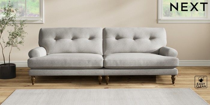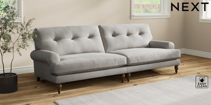 Add charm to your living space with the Erin Button Back Sofa. Its elegant scroll arms and classic button-back cushions create a timeless look. You'll love its "Relaxed Sit" cushions, specially designed for ultimate comfort. These cushions are made with clever foam and fibre, giving you a wonderfully soft, plump feel. To keep them looking their best, simply plump and turn them regularly. Plus, you can make the Erin your own by choosing from a huge range of coloured fabrics.