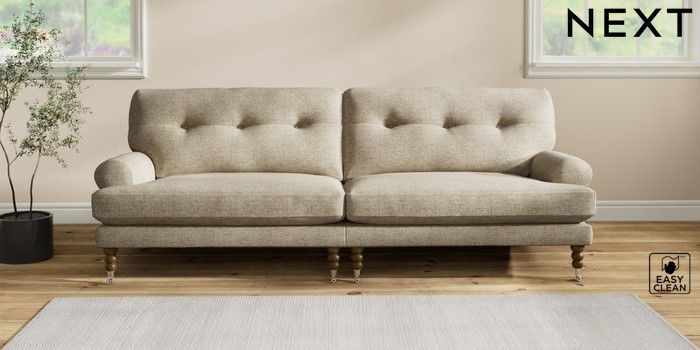 Add charm to your living space with the Erin Button Back Sofa. Its elegant scroll arms and classic button-back cushions create a timeless look. You'll love its "Relaxed Sit" cushions, specially designed for ultimate comfort. These cushions are made with clever foam and fibre, giving you a wonderfully soft, plump feel. To keep them looking their best, simply plump and turn them regularly. Plus, you can make the Erin your own by choosing from a huge range of coloured fabrics.