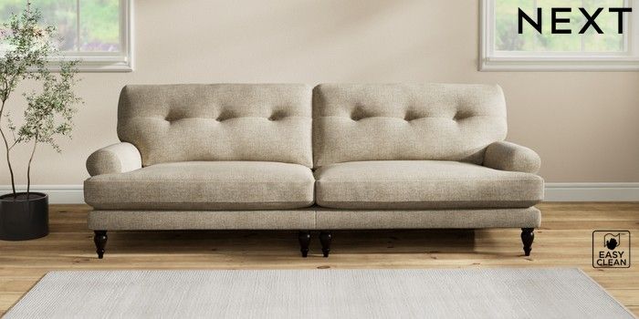 7.2.10 Erin Buttoned Back Deep Relaxed Sit 4 Seater Large Sofa Woven Chenille Easy Clean Mid Natural High Classic Turned - Dark | Made Click here to use our website with more accessibility support, for example screen readers