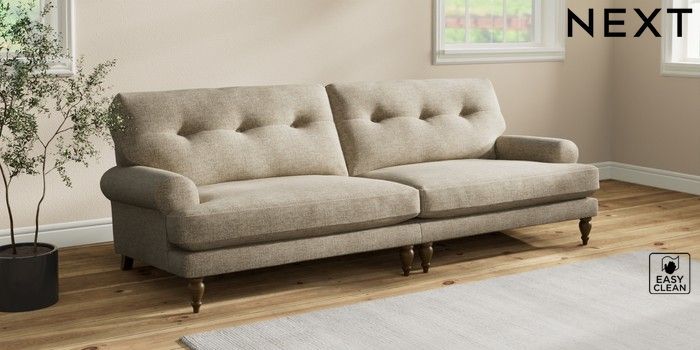 7.2.10 Erin Buttoned Back Deep Relaxed Sit 4 Seater Large Sofa Woven Chenille Easy Clean Mid Natural High Classic Turned - Mid | Made Click here to use our website with more accessibility support, for example screen readers