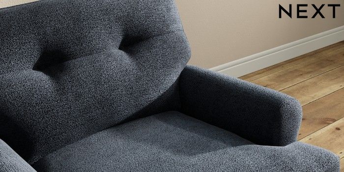 7.2.10 Erin Buttoned Back Deep Relaxed Sit Armchair Boucle Chenille Dark Slate Blue High Classic Turned Chrome Castor - Light | Made Click here to use our website with more accessibility support, for example screen readers