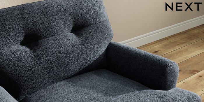 7.2.10 Erin Buttoned Back Deep Relaxed Sit Armchair Boucle Chenille Dark Slate Blue High Classic Turned - Mid | Made Click here to use our website with more accessibility support, for example screen readers