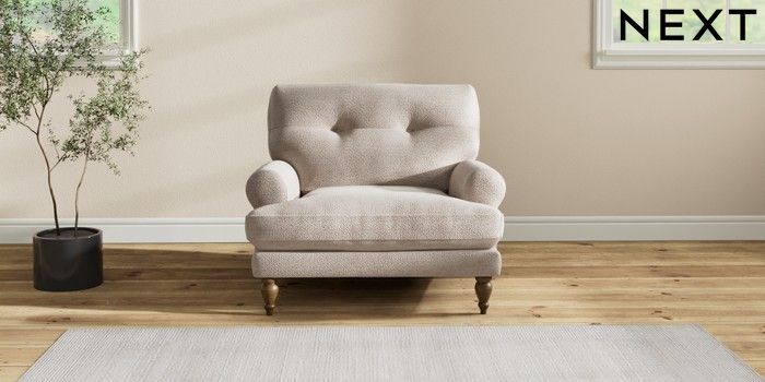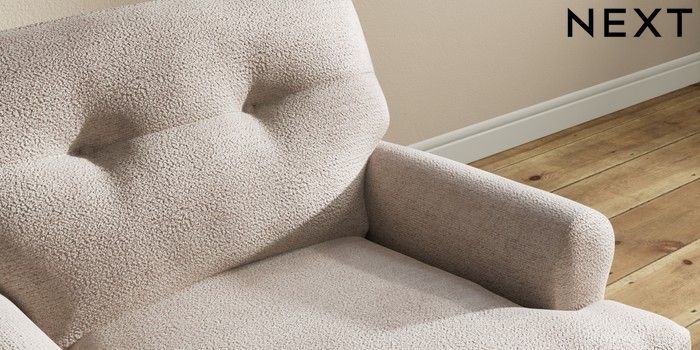 7.2.10 Erin Buttoned Back Deep Relaxed Sit Armchair Boucle Chenille Light Natural High Classic Turned - Mid | Made Click here to use our website with more accessibility support, for example screen readers